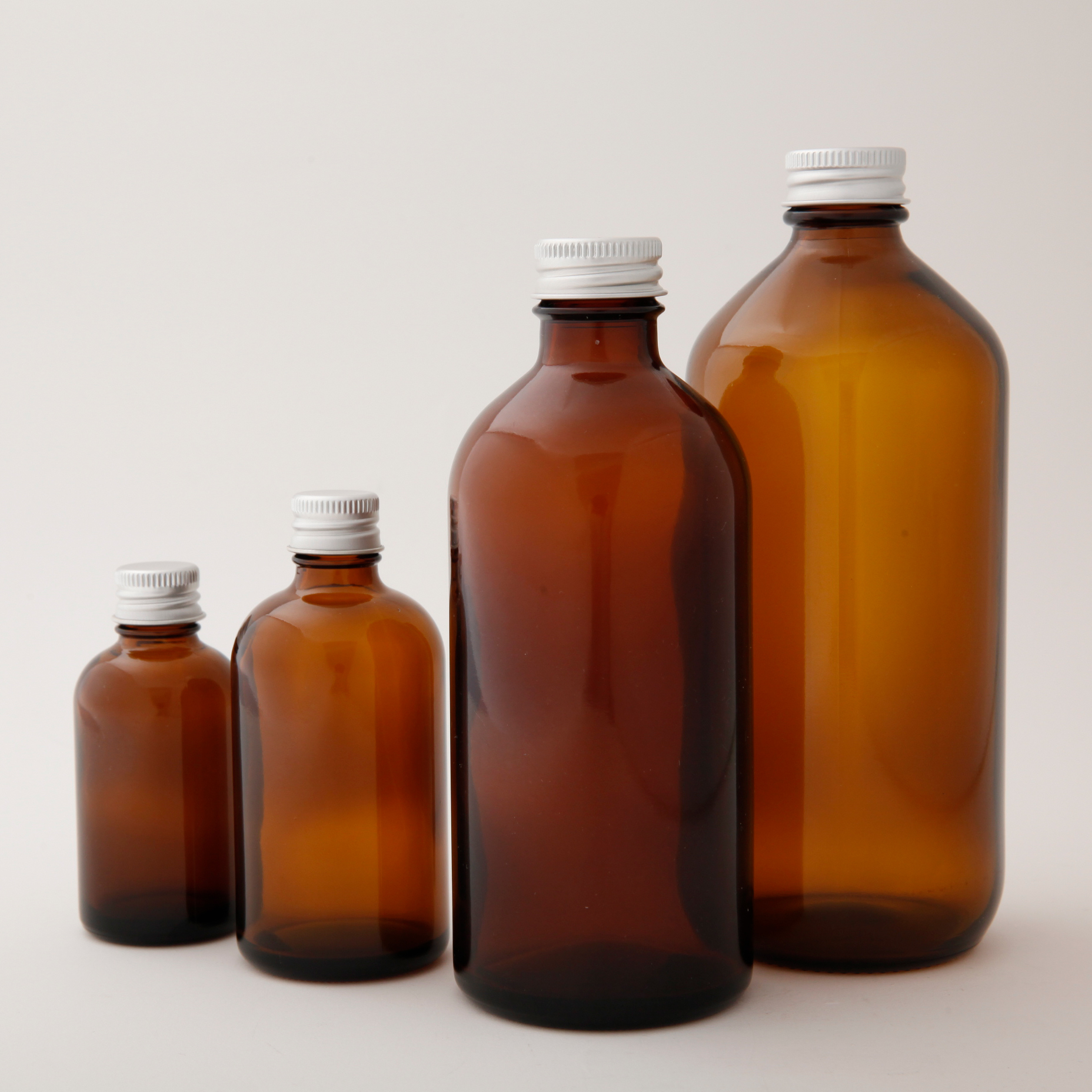 ○ガラス製アンバー遮光瓶 ○アルミのスクリューキャップ付属 ○サイズ:300ml 遮光瓶遮光性に優れており、紫外線を通しにくいので、 オイルなどを保存するのに最適です。 サイズは下記4種類のご用意がございます。